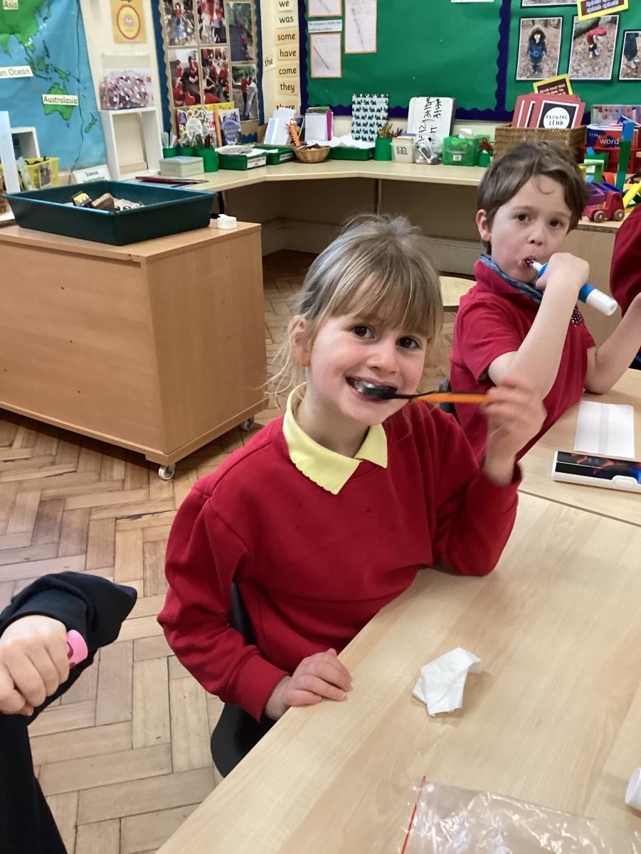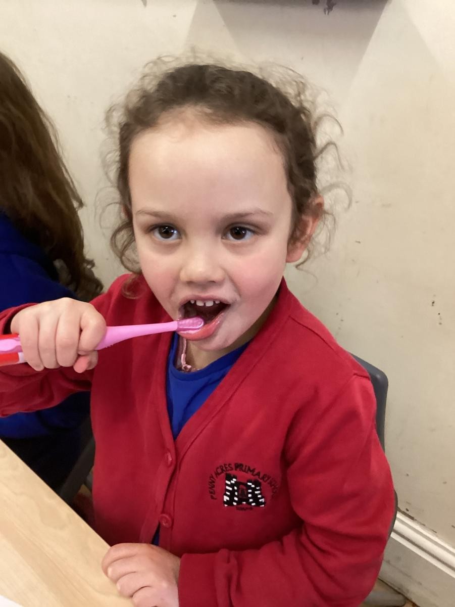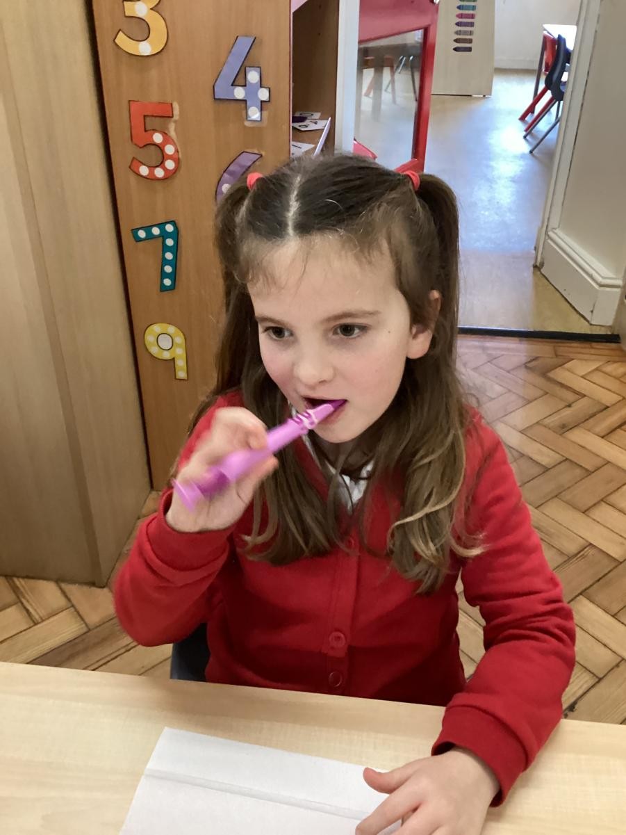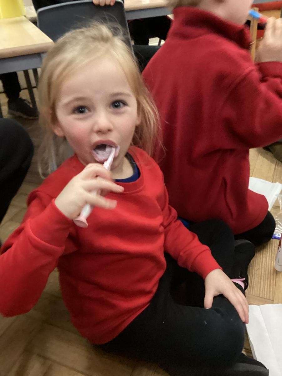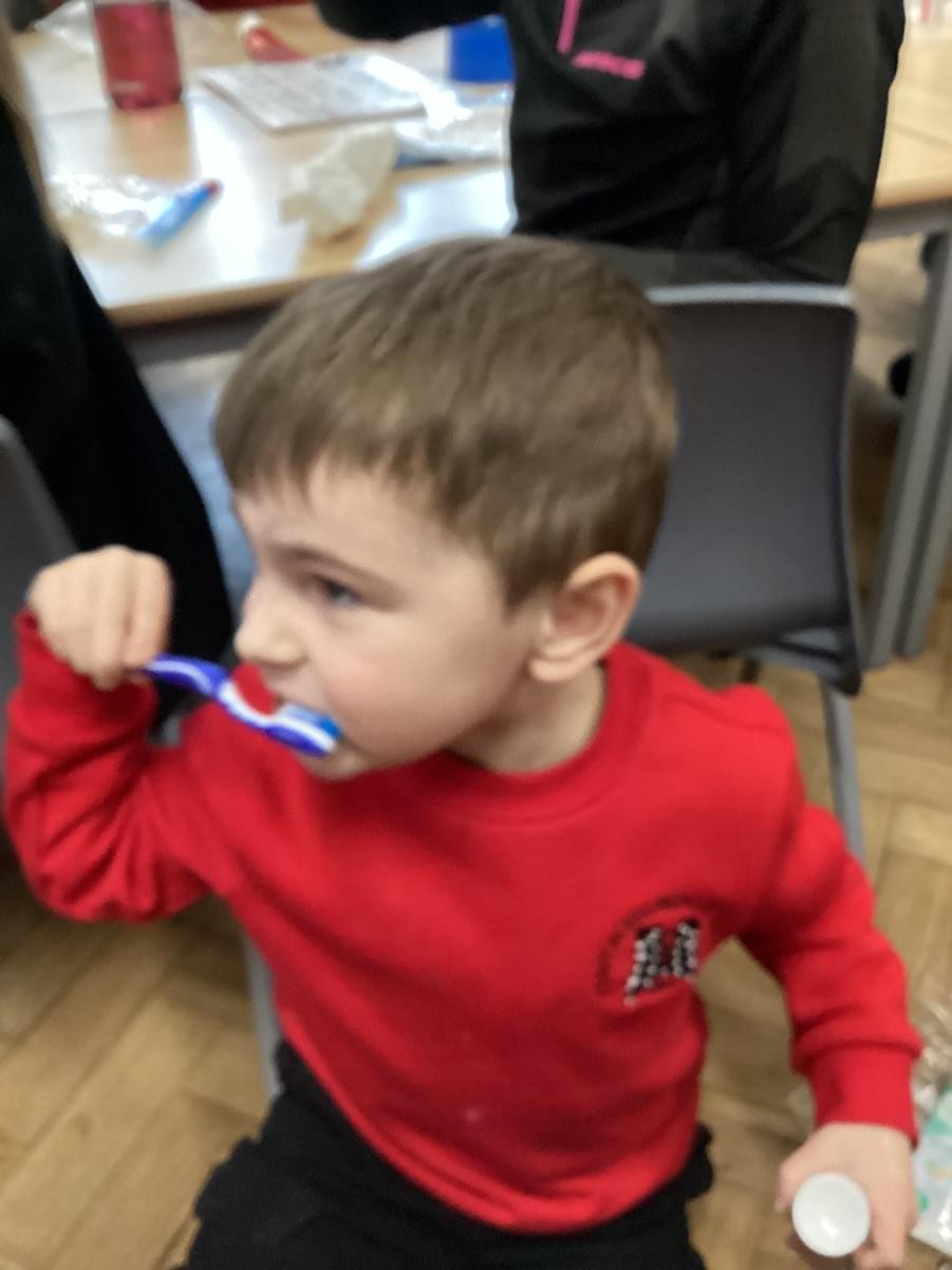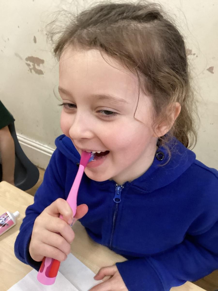 We practised brushing our teeth for two minutes. We listened to a song to help us.