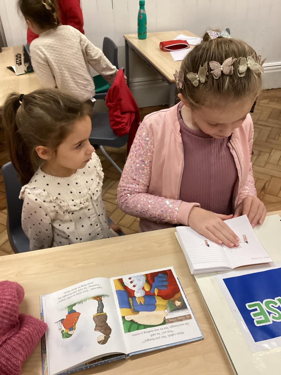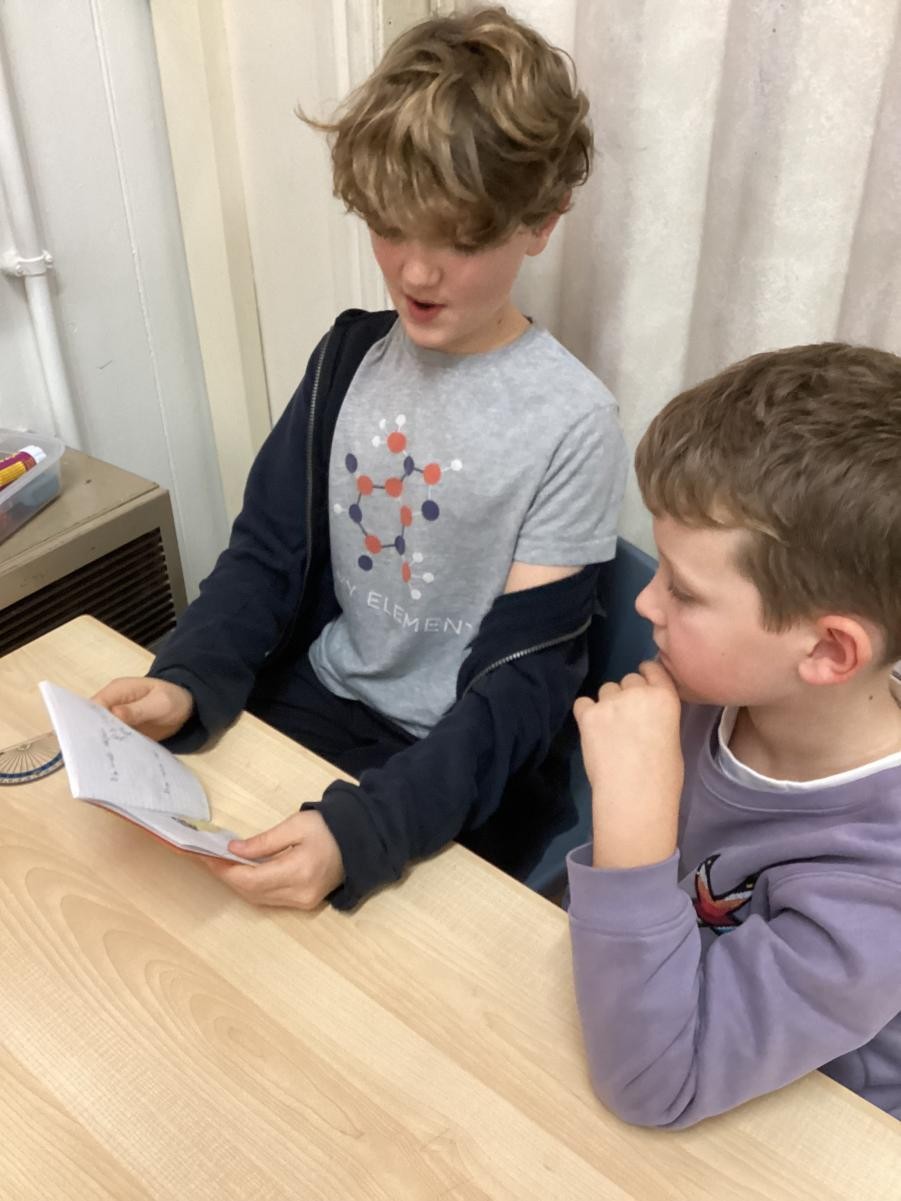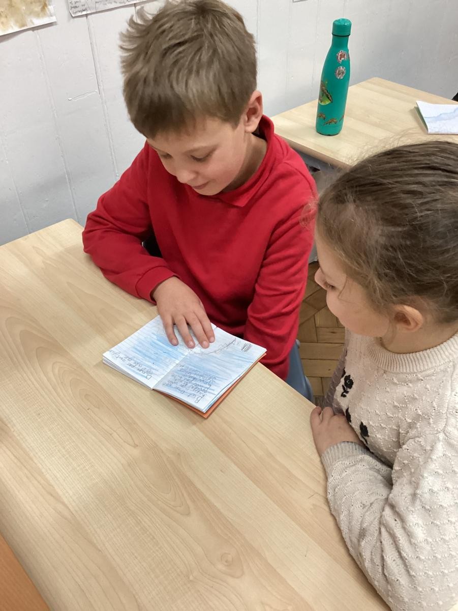 The Juniors shared the books they had written with the Infants and then looked at some of the Big Books from around the classroom.