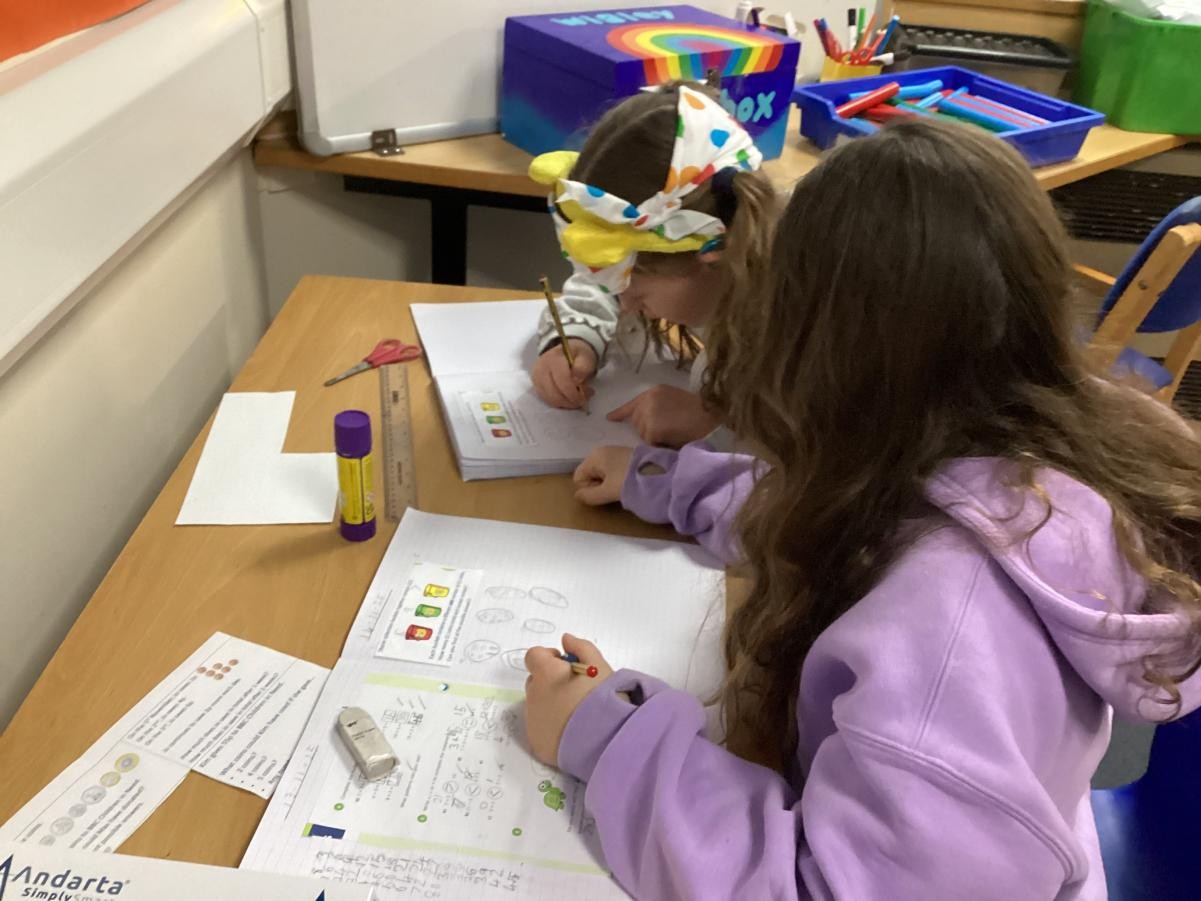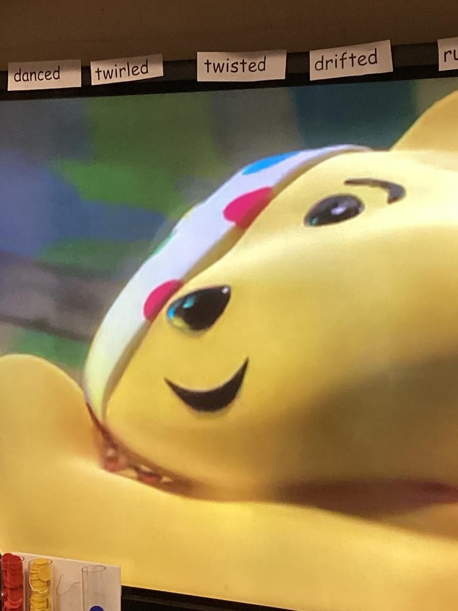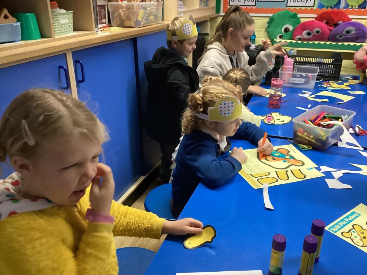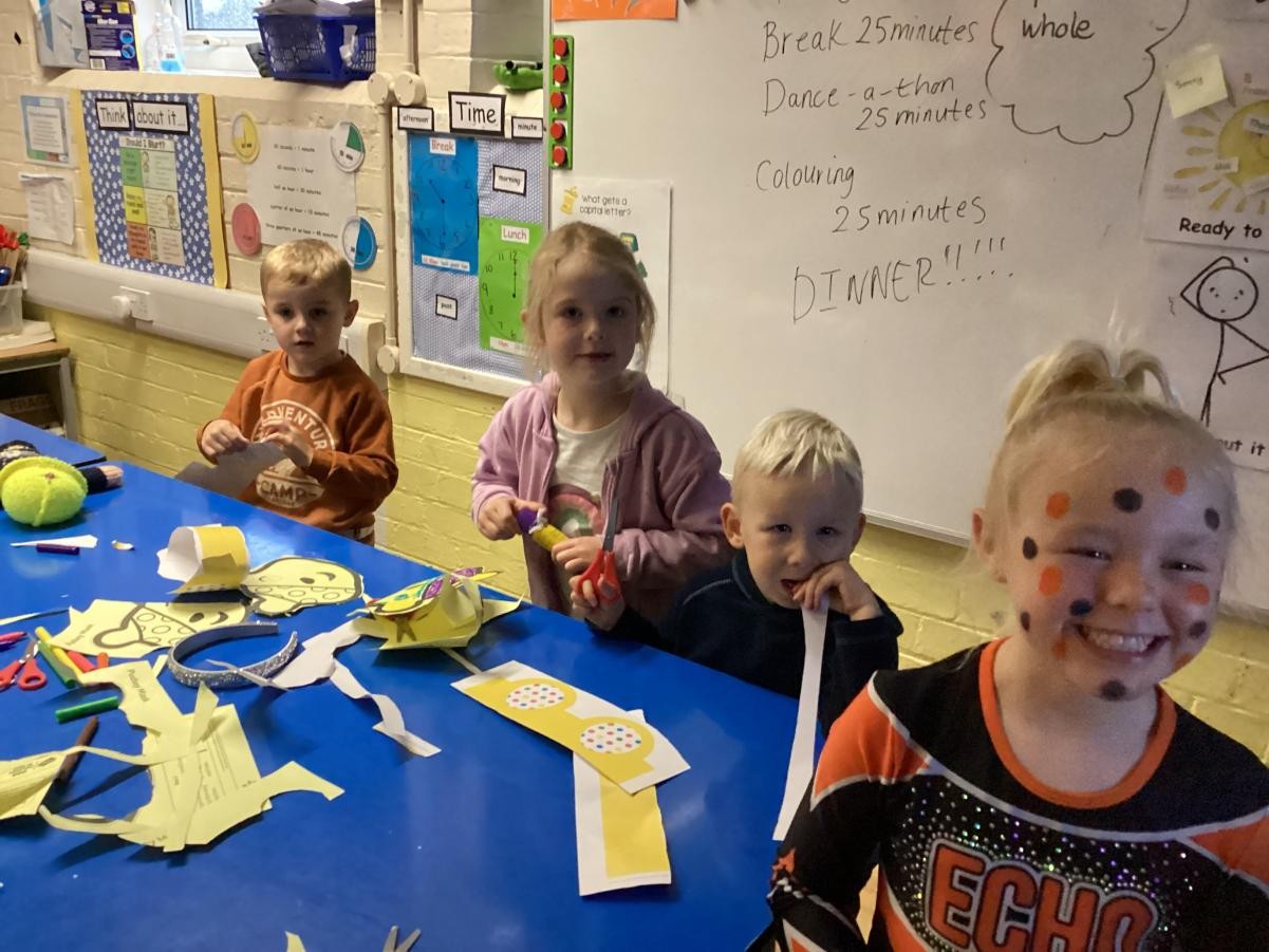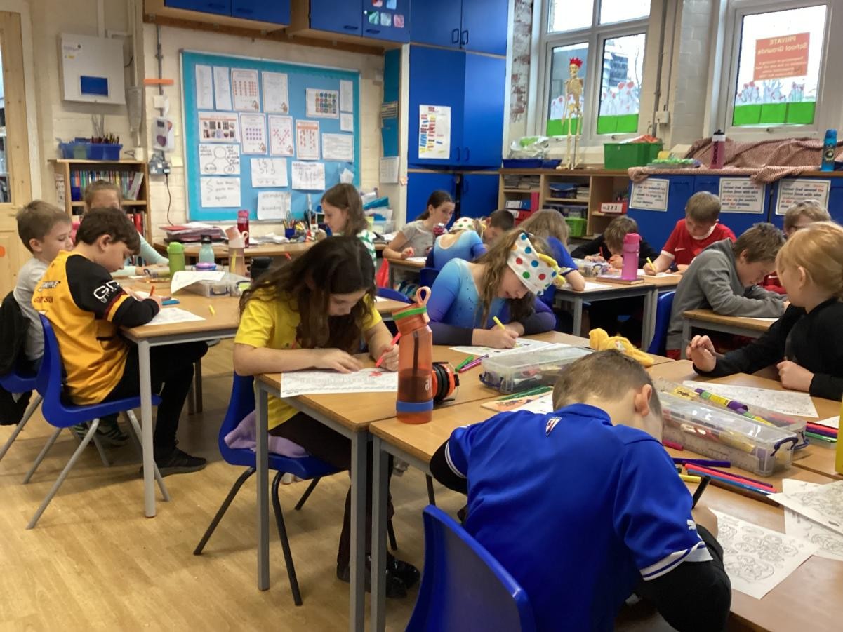 Pudsey maths problems. Making masks for Children in Need. 25 minutes for break. 25 minutes danceathon. We enjoyed dancing with Pudsey!!! After the noise, comes the calm.