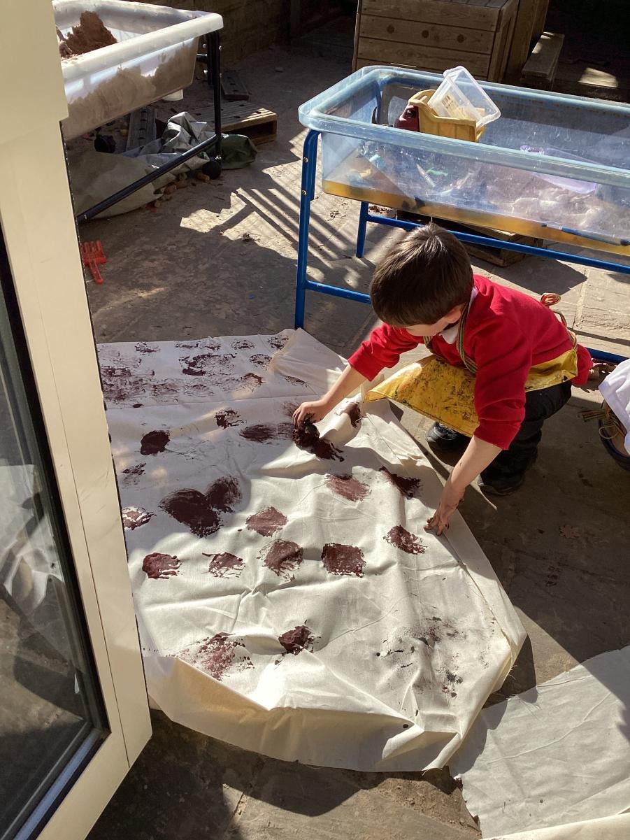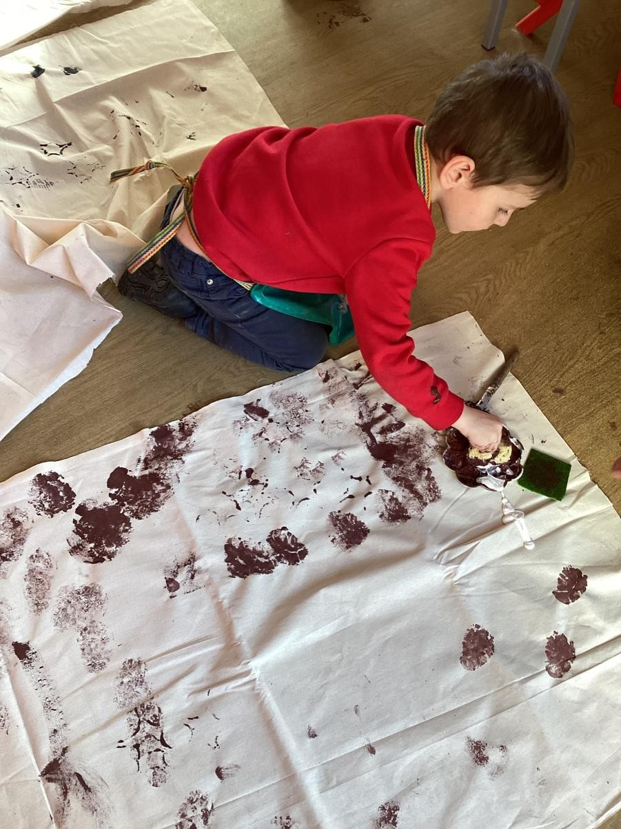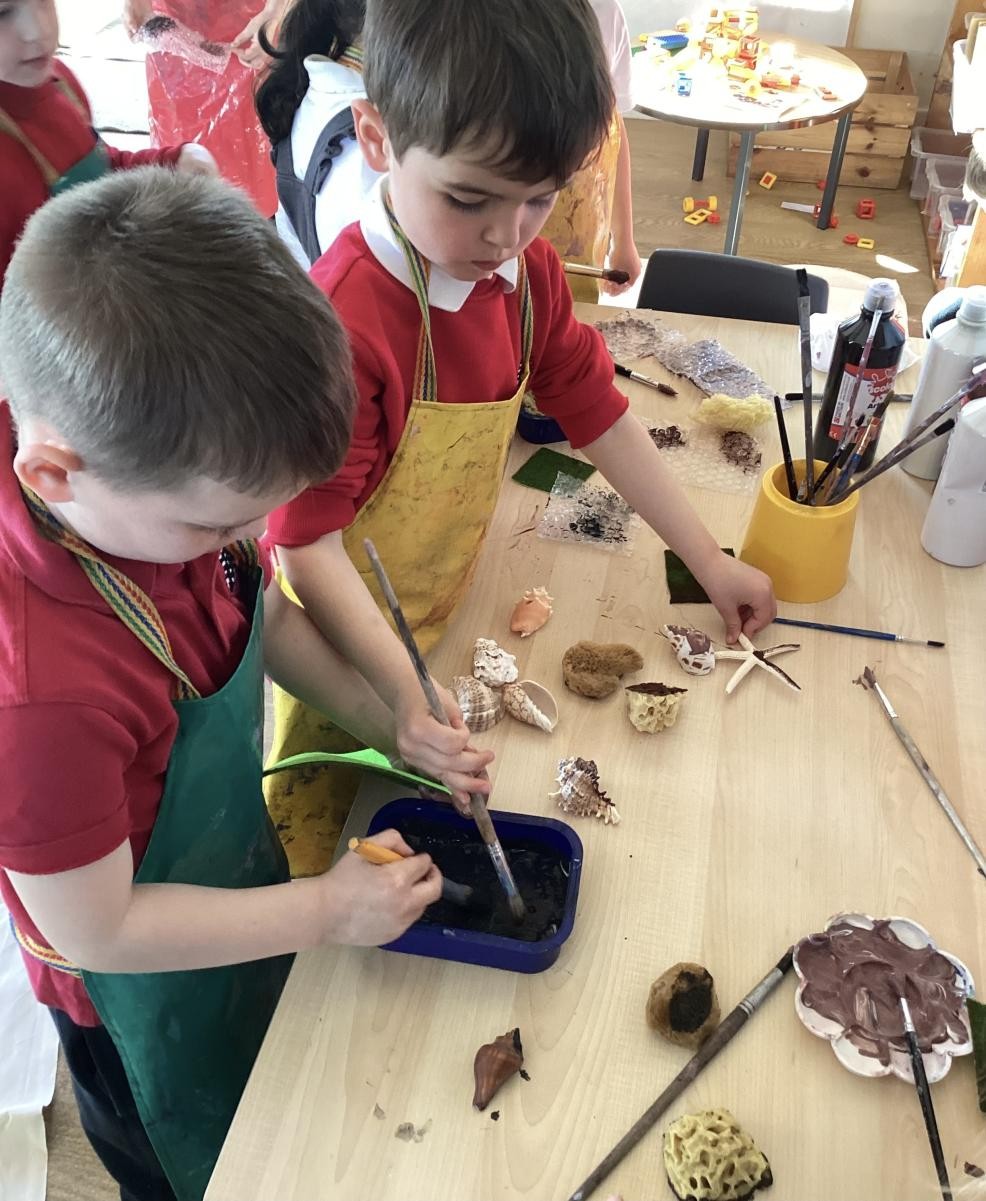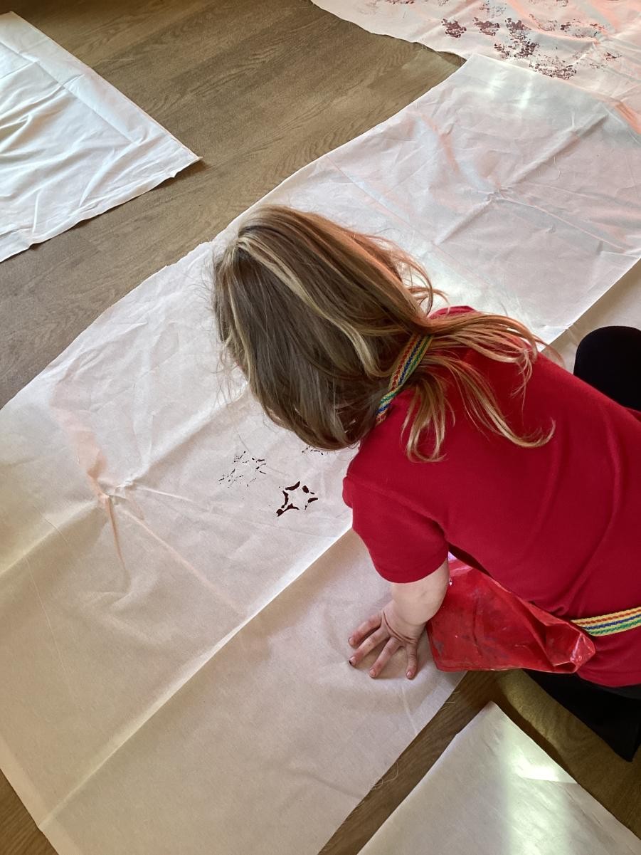 The Spots made their fossil outfits by printing on fabric. They used bubble wrap, sponges, shells and lots of other textures to create their designs.