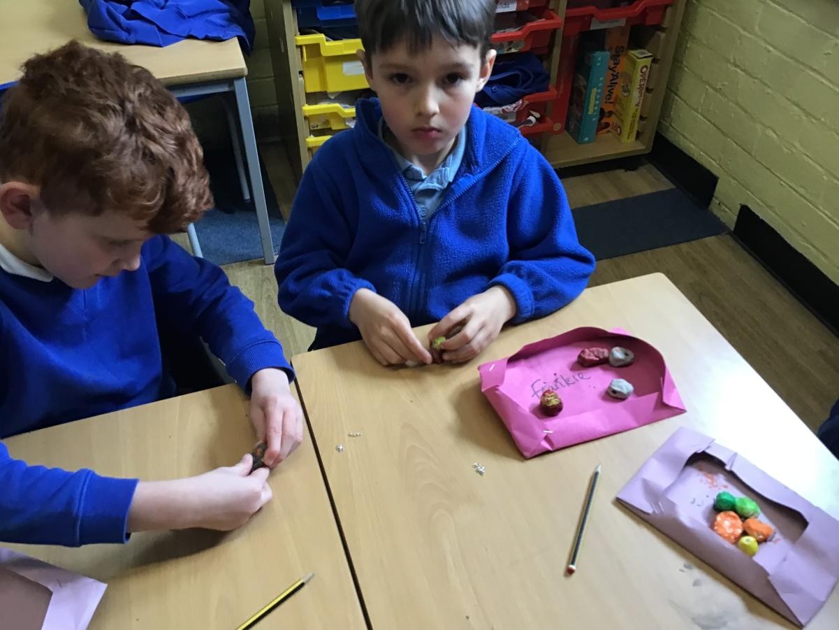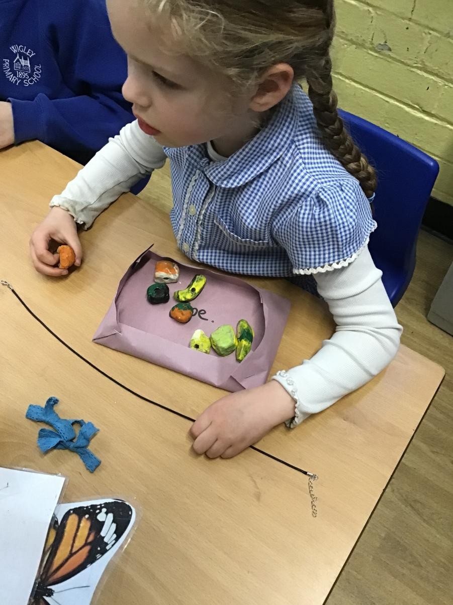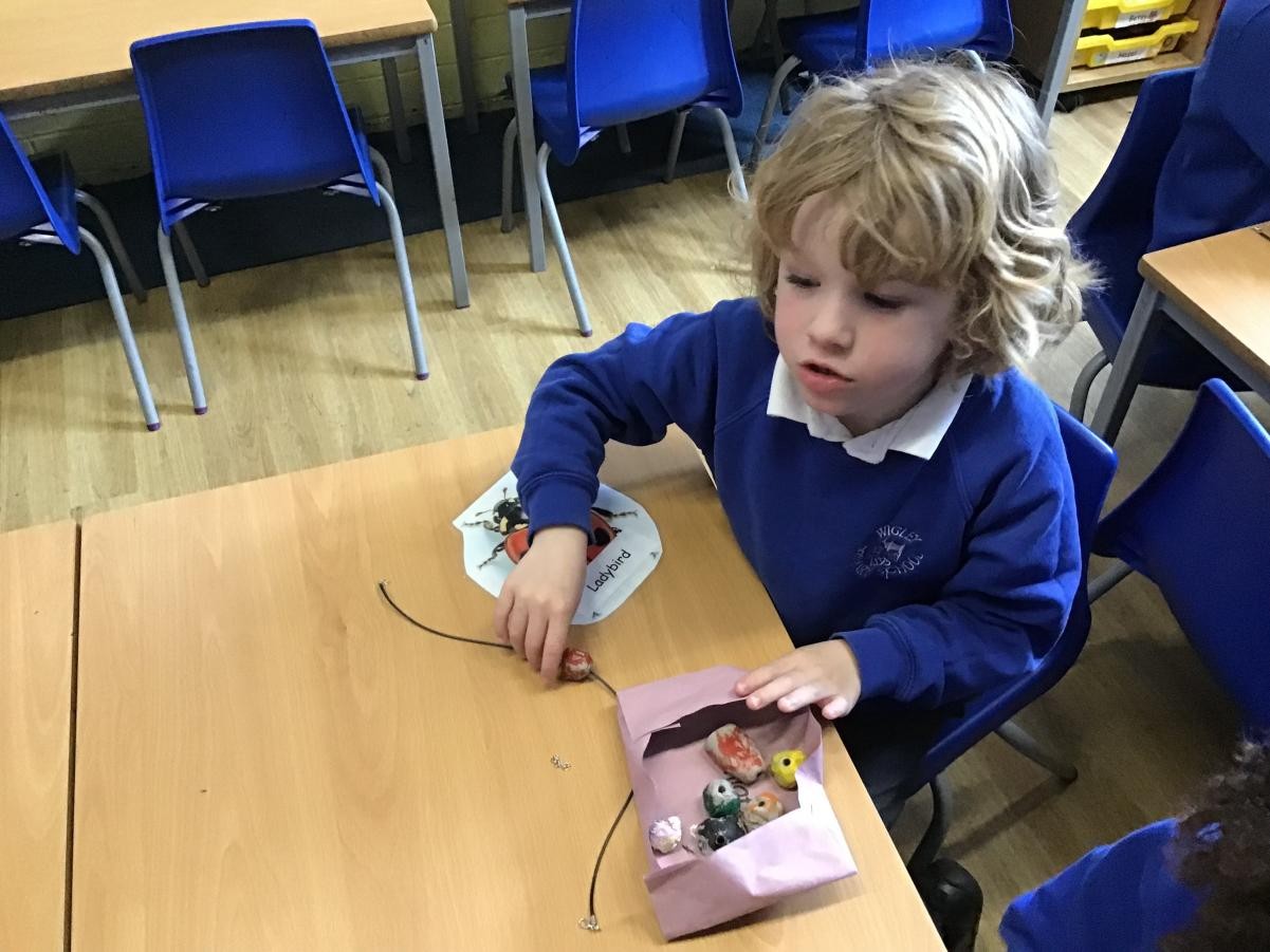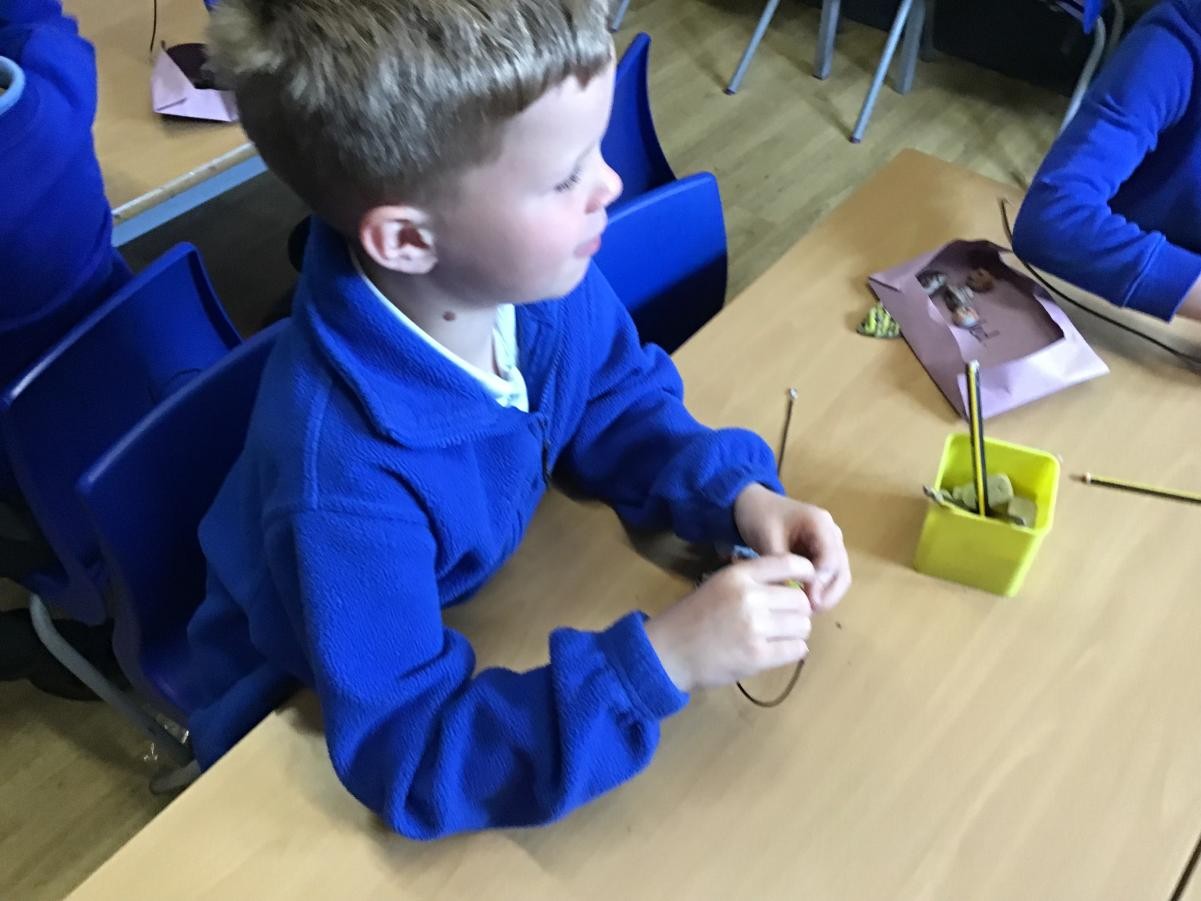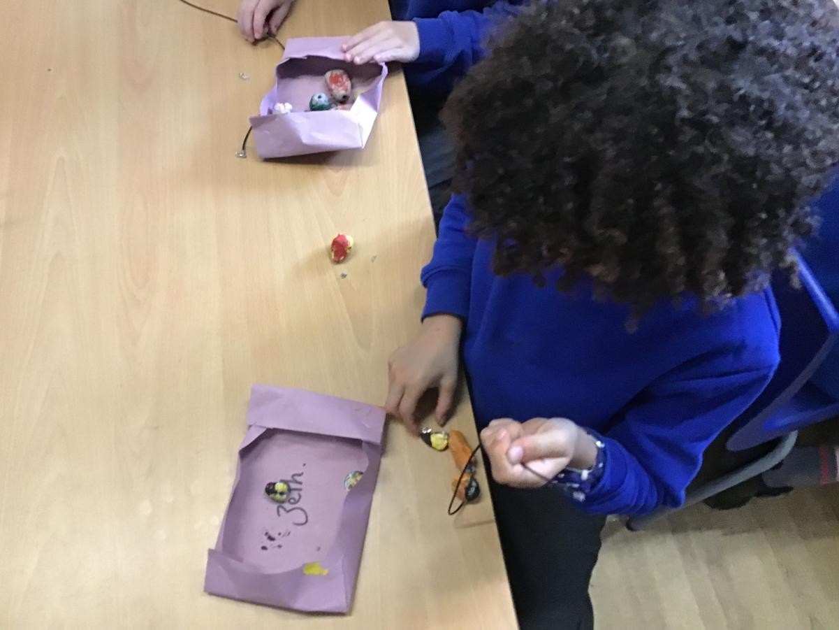 We finished our necklaces this afternoon by threading our painted clay beads onto our cords. This was tricky and we had to be very patient - a few of our holes needed drilling to make them big enough but we are very proud of our final results. Mr Ratcliffe came to join in the fun for a while too!