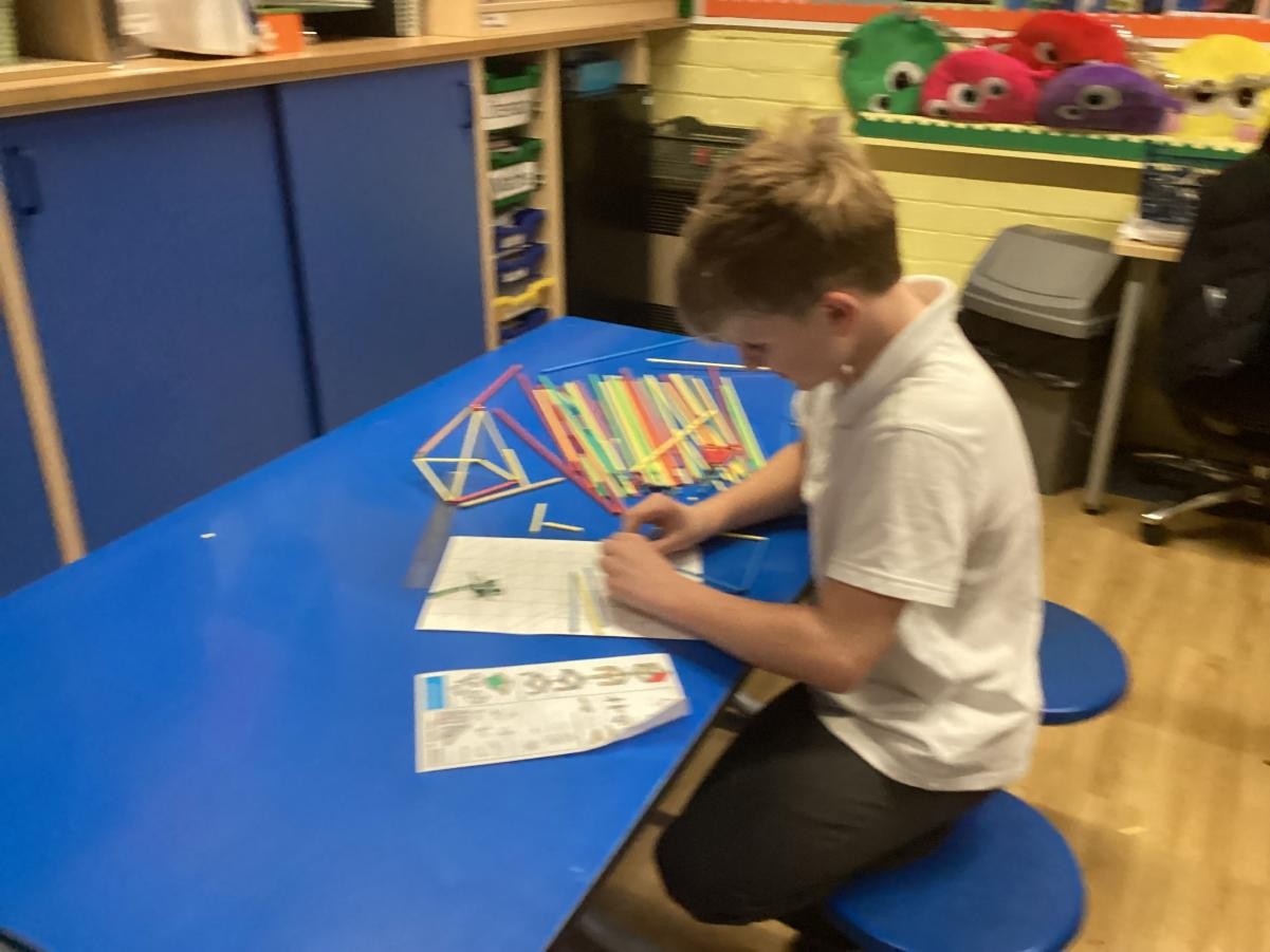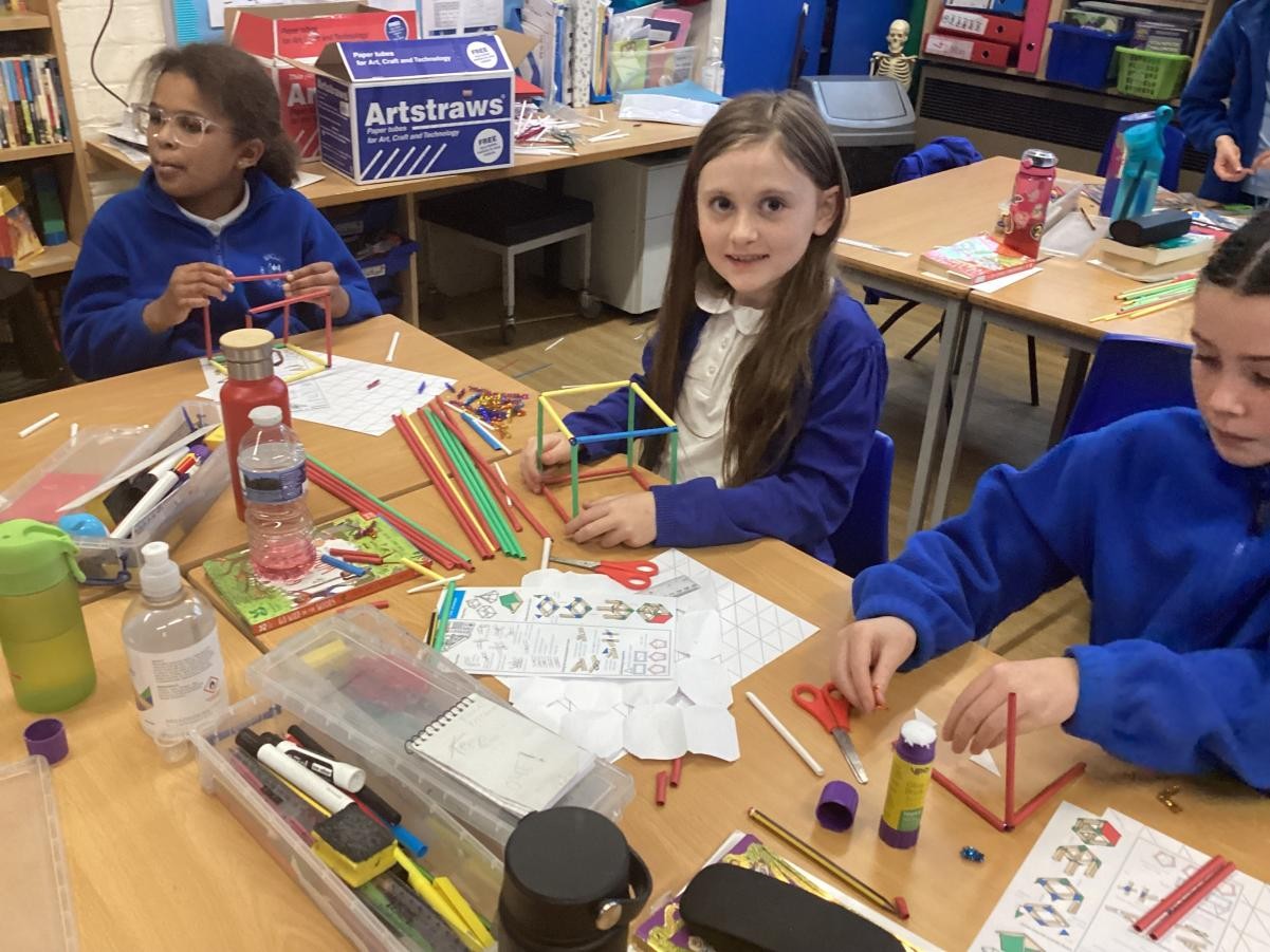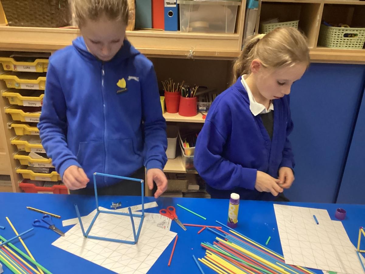 Years 5 and 6 have been investigating frame structures and Years 3 and 4 have looked at the rigidity of shell structures.