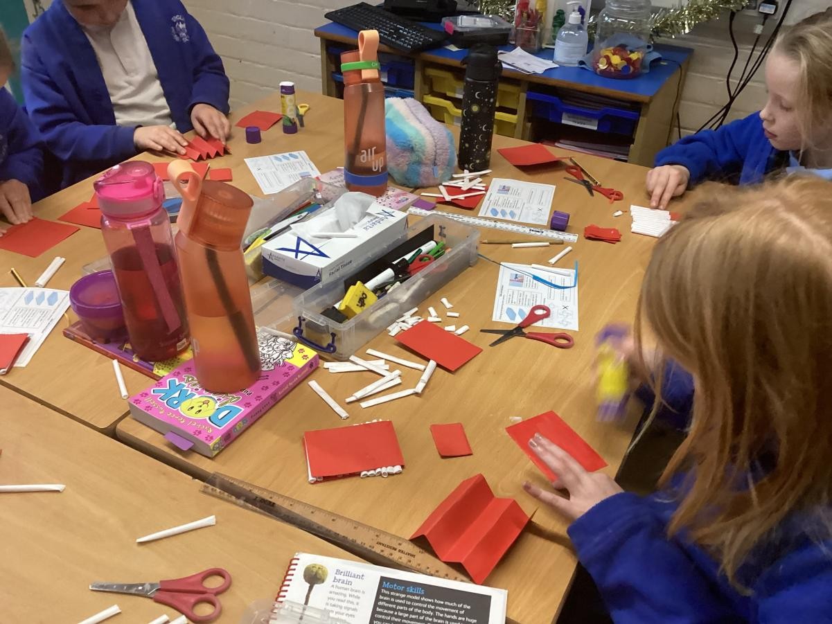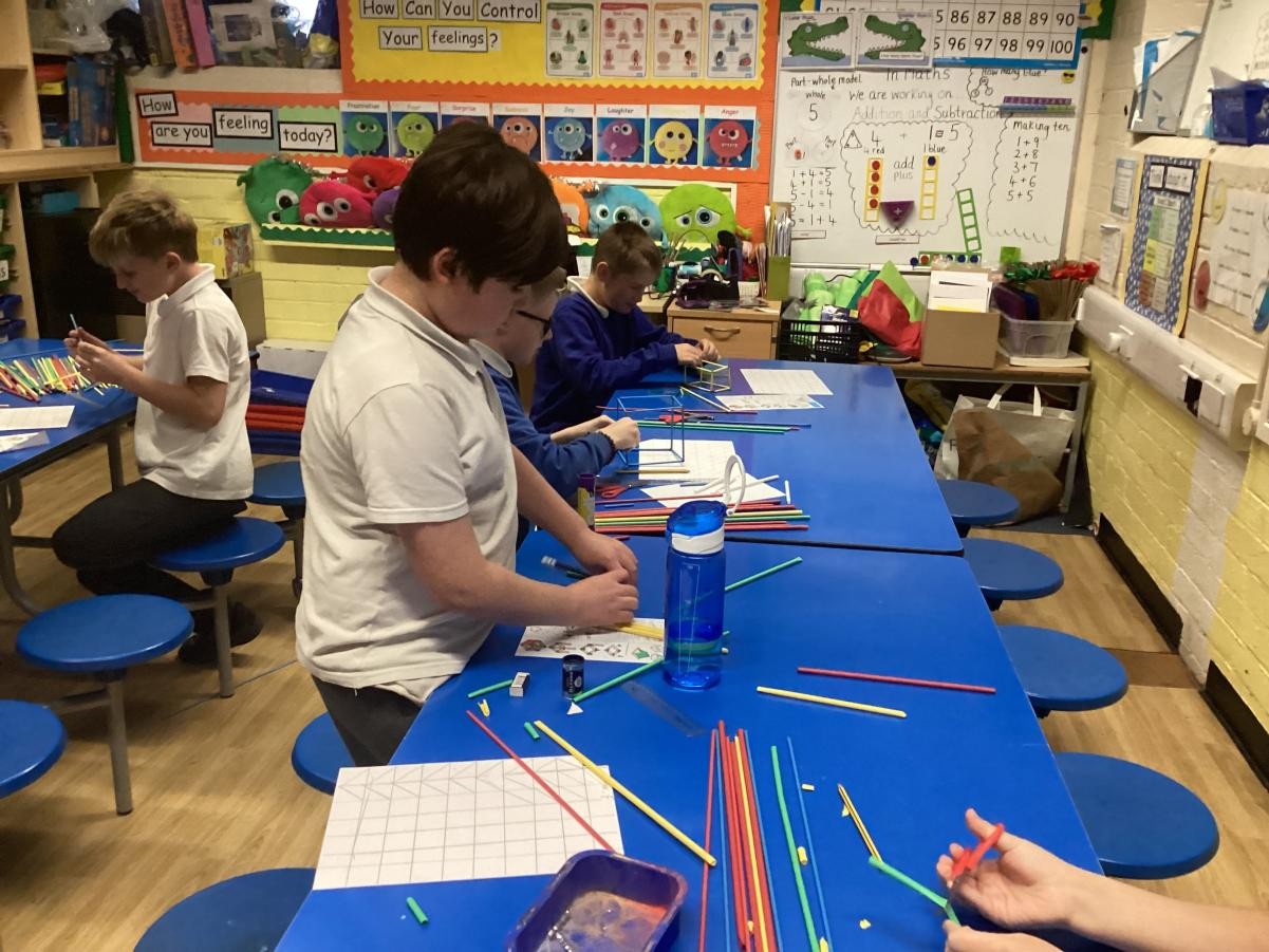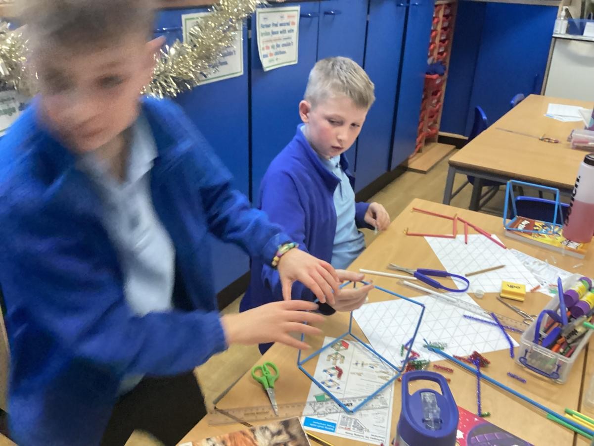 Years 5 and 6 have been investigating frame structures and Years 3 and 4 have looked at the rigidity of shell structures.