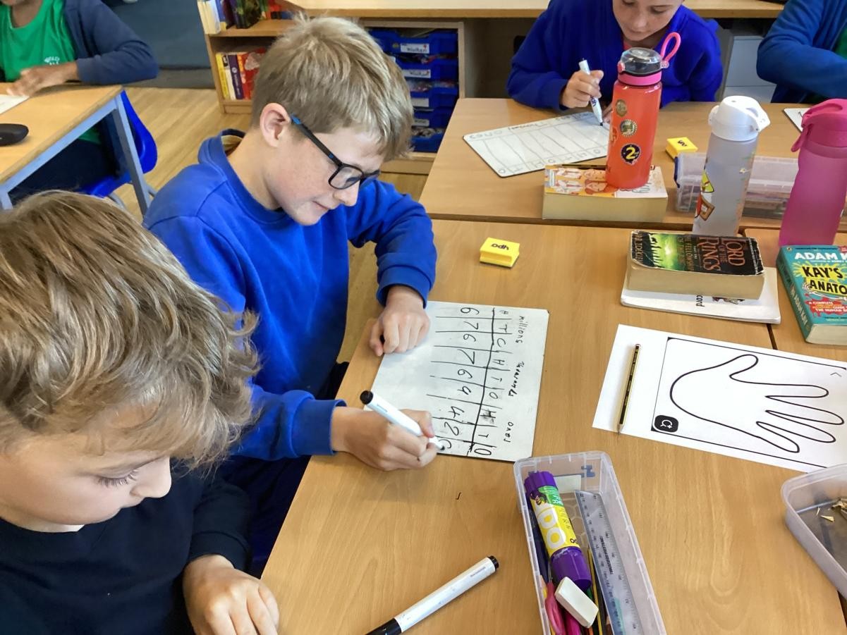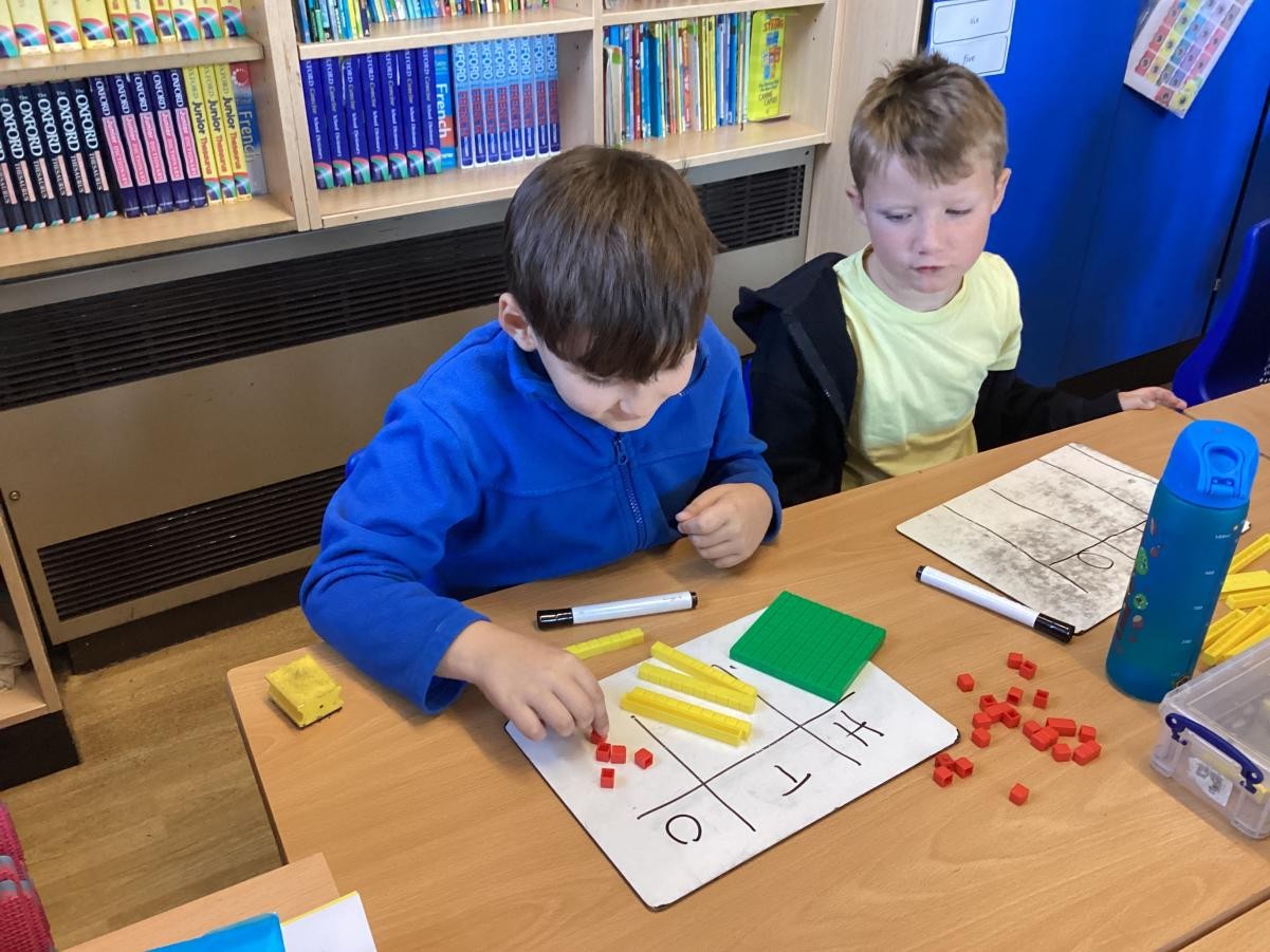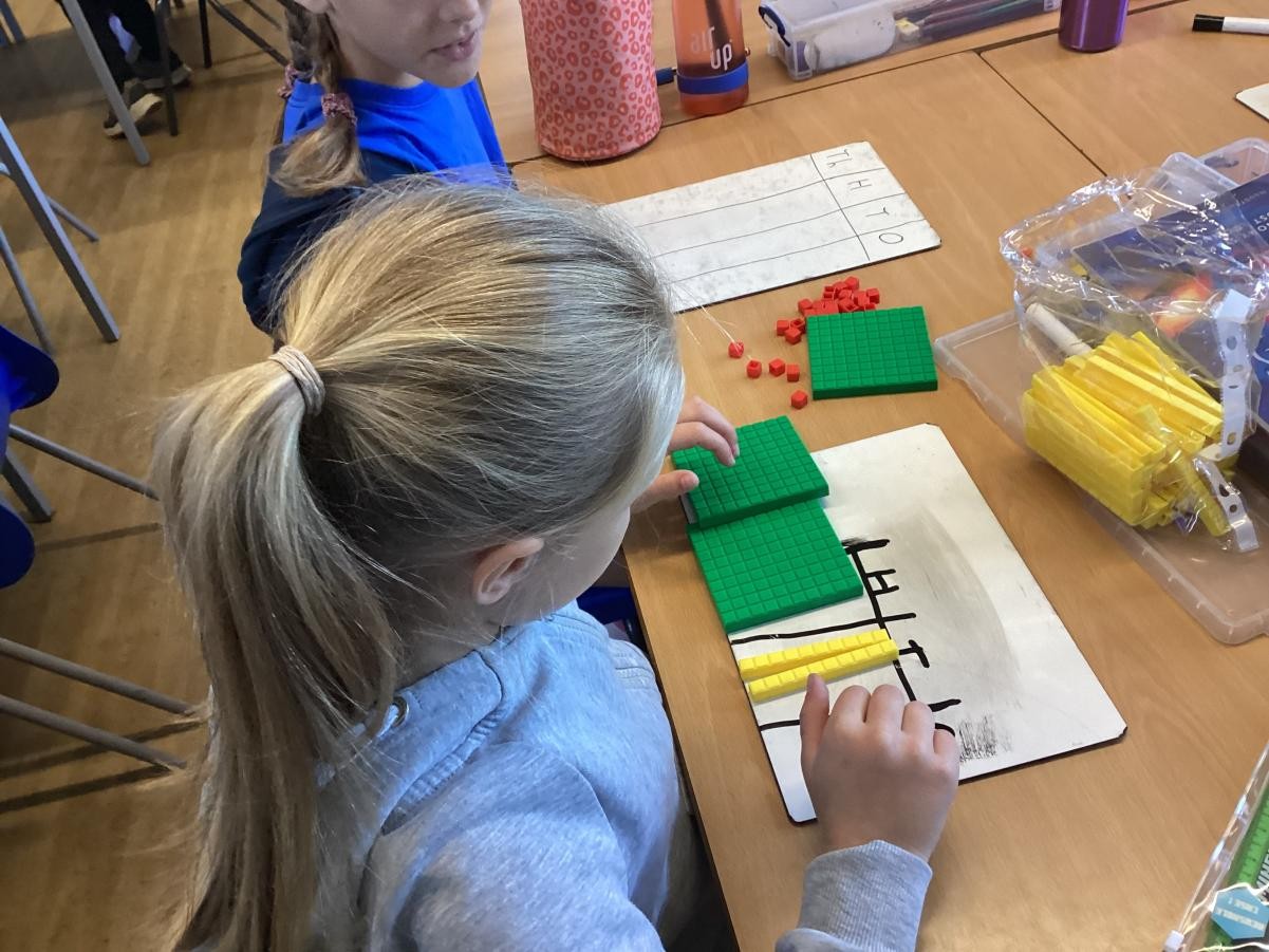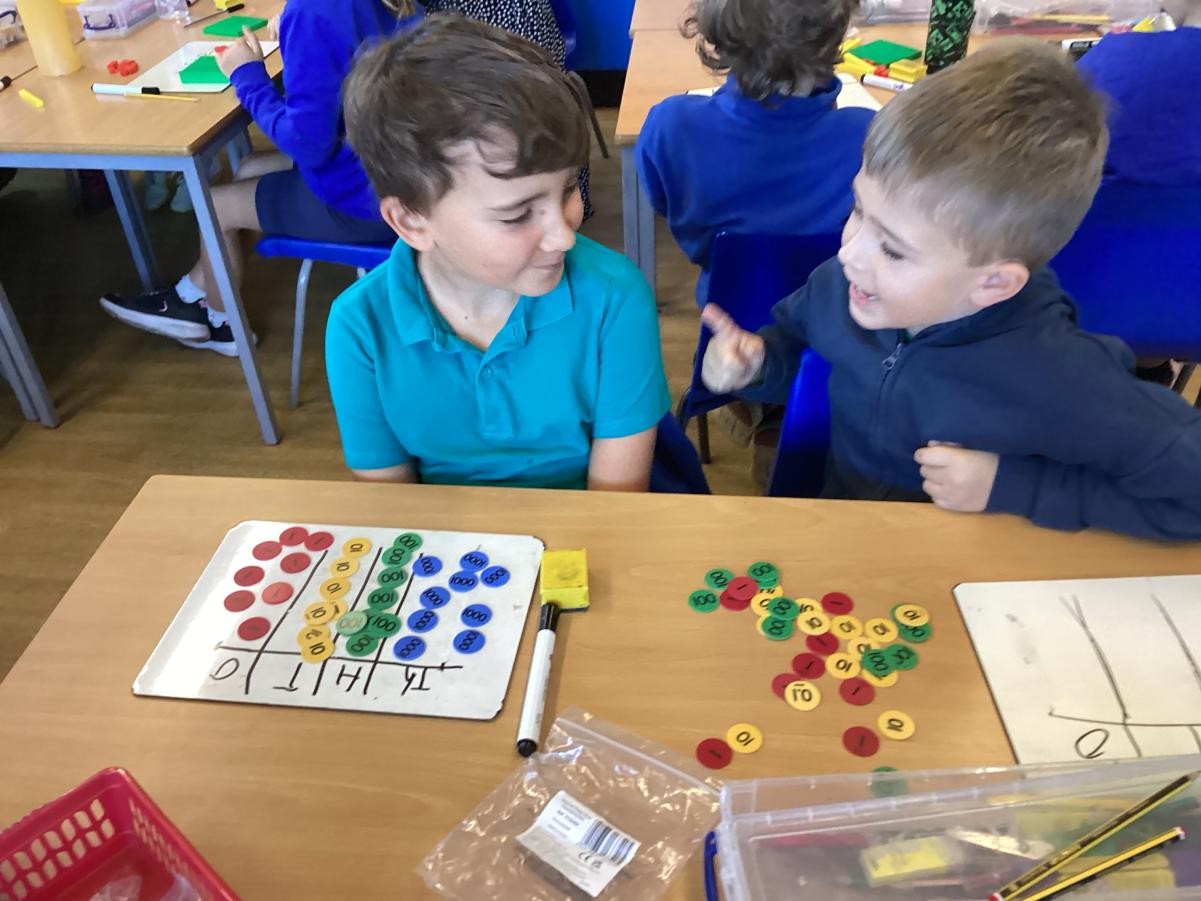 We have been looking at reading and writing increasingly large numbers. We have been working with a partner to add one more to one of the place value columns.