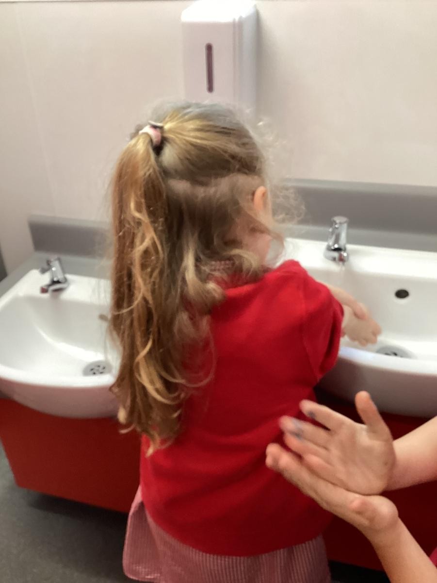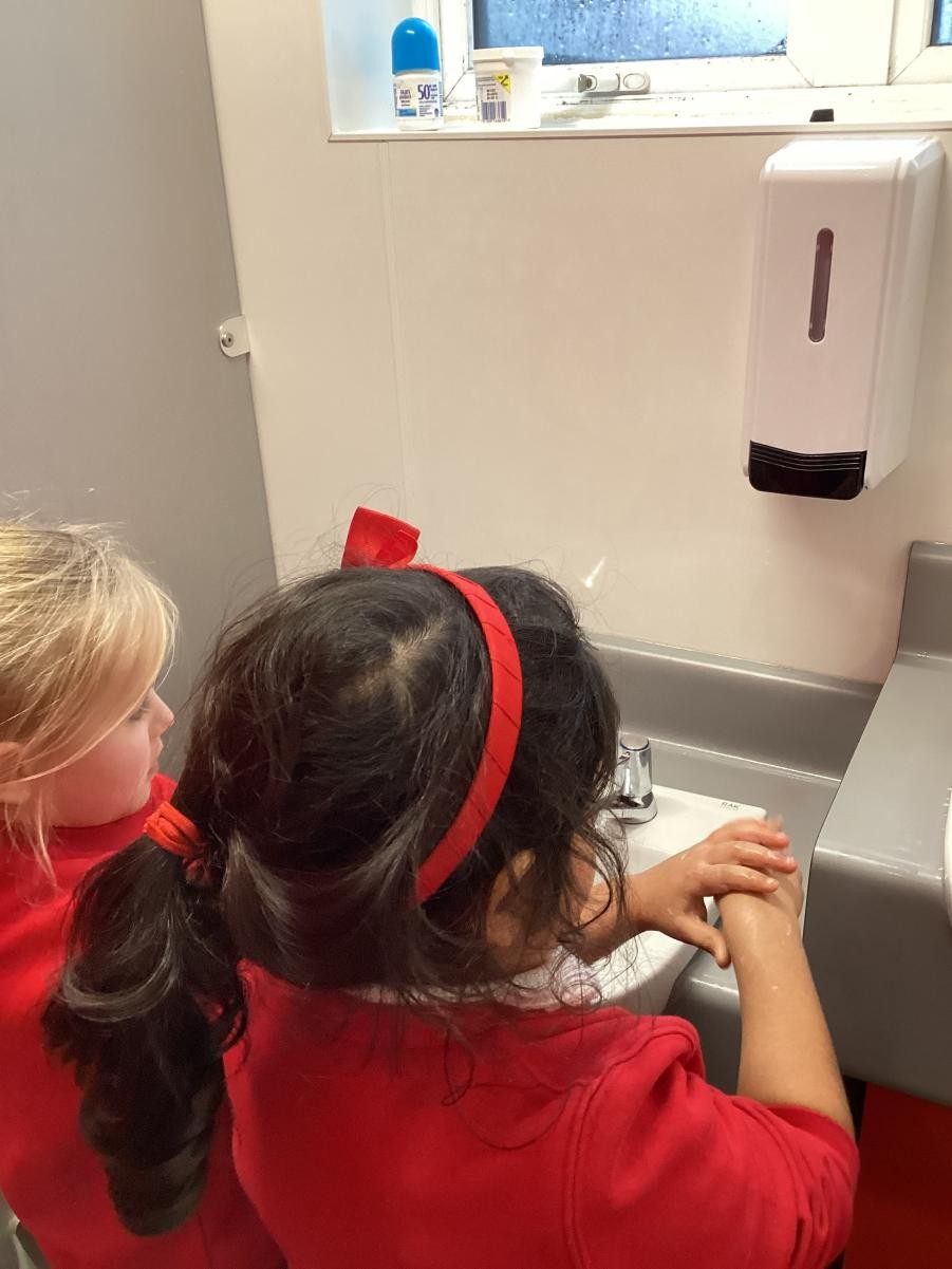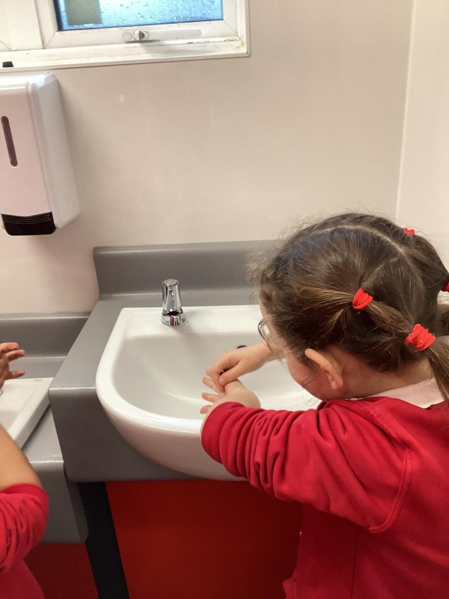 We practised washing our hands as part of our PSHE topic about healthy living.
