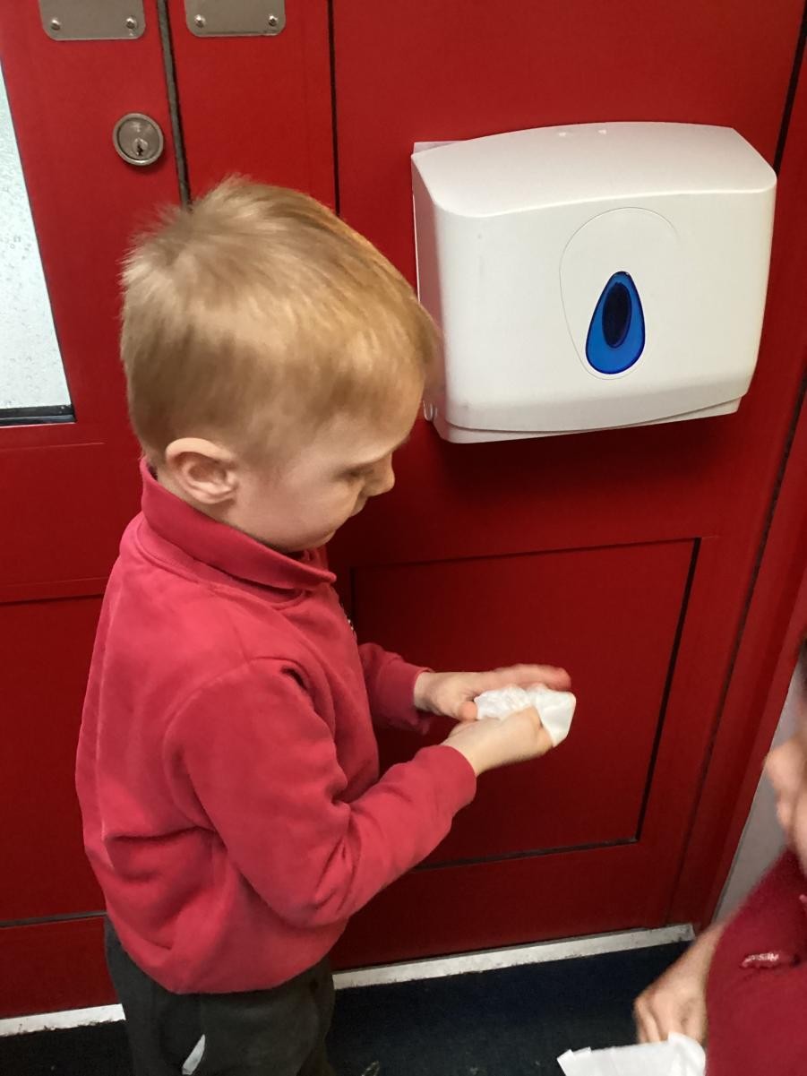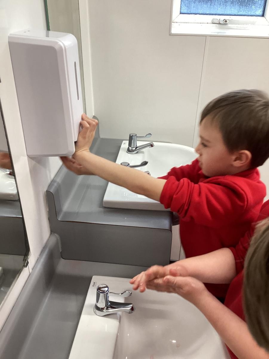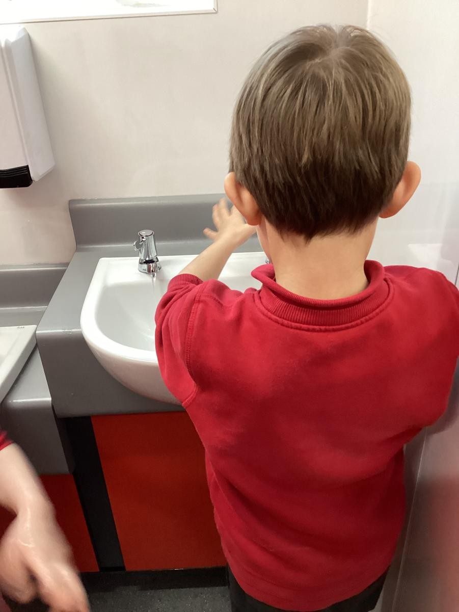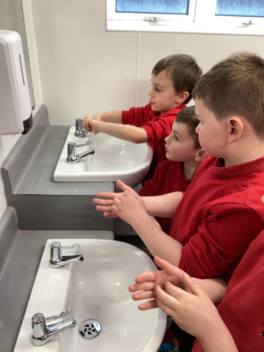 We practised washing our hands as part of our PSHE topic about healthy living.